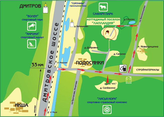 Добраться до поселка Лапландия можно по карте проезда справа.